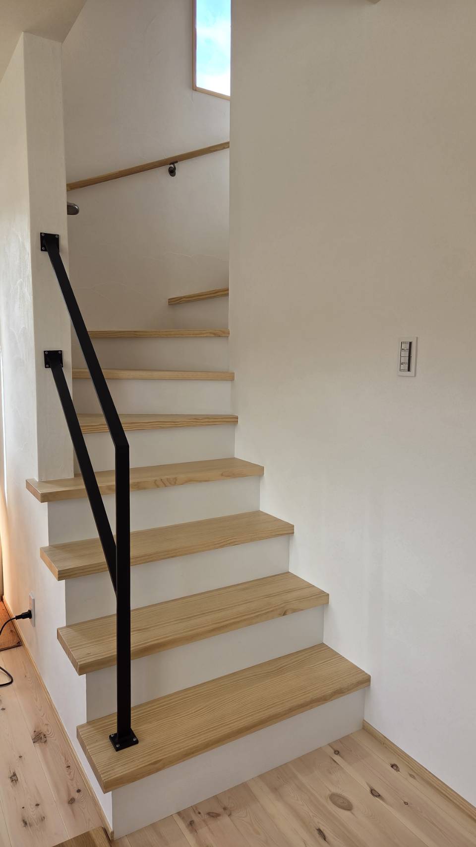 白い漆喰にマッチしてアイアン手すりが引き立つ